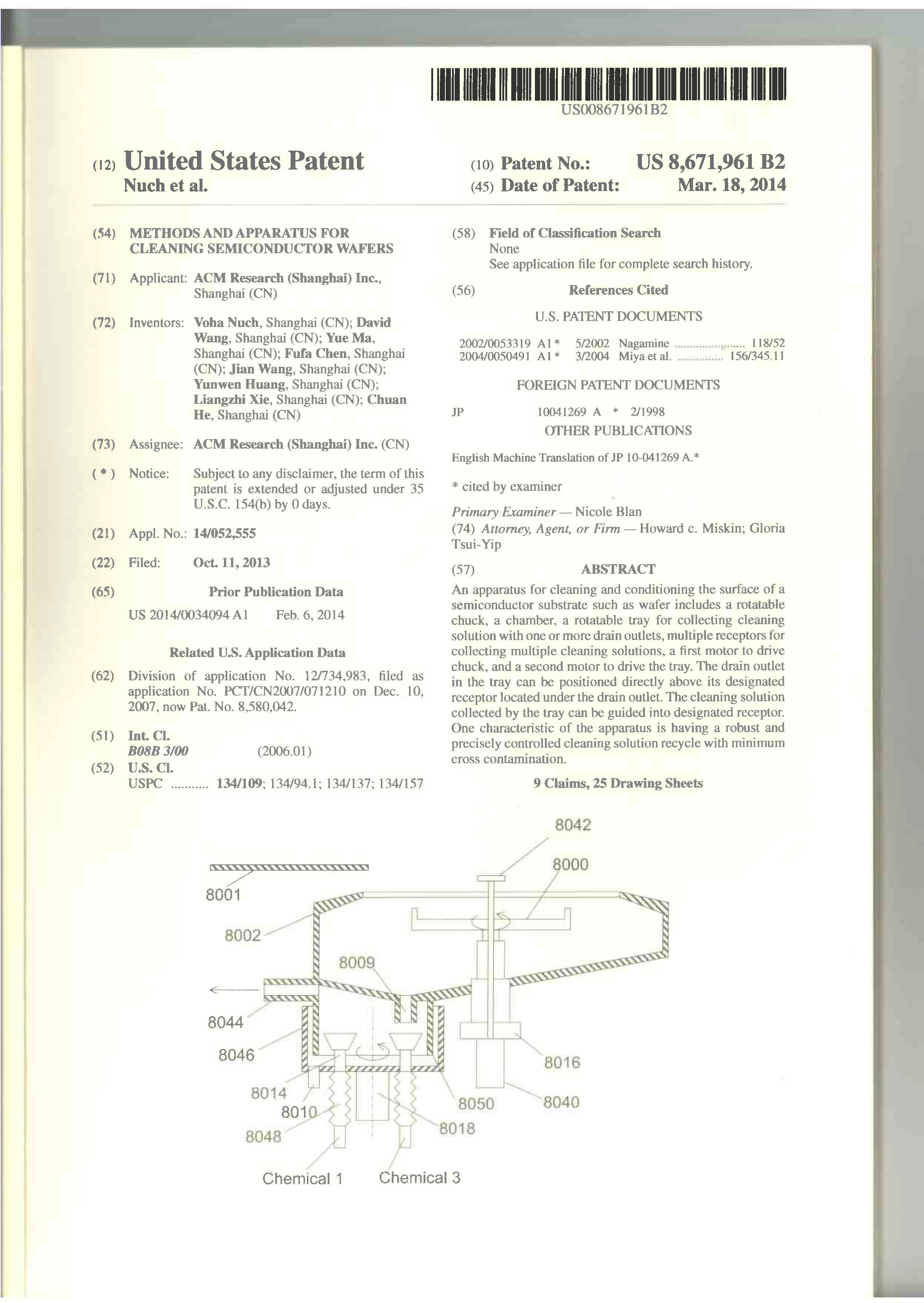 METHODS AND APPARATUS FOR CLEANING SEMICONDUCTOR WAFERS